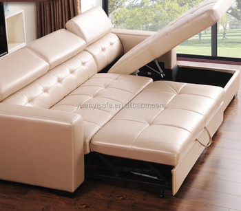 2017 חדש סגנון פונקציונלי יוקרה עור ספה מיטה עם משענת ראש מתכווננת YB2238